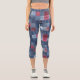 Stylish Denim Patchwork, in Blue & Red custom text Capri Leggings