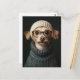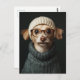 A cute dog wearing glasses, a knit beanie, and a turtleneck sweater, exuding a scholarly and fashionable vibe.