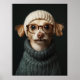 A cute dog wearing glasses, a knit beanie, and a turtleneck sweater, exuding a scholarly and fashionable vibe.