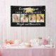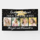 Celebrate both graduates at a double graduation party (or four graduates sharing a party) with this custom colour banner sign (shown in black) featuring 4 photos (2 of each grad) and the title CONGRATULATIONS YEAR GRADUATES in a modern, white hand lettered brush script calligraphy typography ideal for male or female and personalised with their names. The design features a a faux metallic gold foil graduation cap or mortarboard and gold confetti. CHANGES: You can change the background colour to a school colour or coordinating party theme colour as well as any text font style, size, colour or placement. Ideal to use for a group graduation party as well. ASSISTANCE: For help with design modification or personalisation, colour change, resizing or transferring the design to another product, contact the designer BEFORE ORDERING via the Zazzle Chat MESSAGE tab or email makeitaboutyoustore@gmail.com.