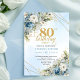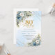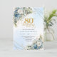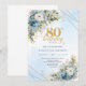 Stylish Dusty Blue Floral Gold 80th Birthday Invit Invitation