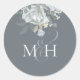 Stylish Dusty Blue Floral Simple Monogram Flower Classic Round Sticker