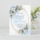 Stylish Dusty Blue Flowers Gold Frame Bridal Showe Invitation