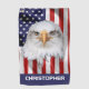 Stylish head of a bald eagle over the American flag. A patriotic golf towel for anyone. Customisable template name at the bottom. You can change or delete the name. You can transfer this design to a number of other towels. If you need to change the font, font colour, the colour of the background; if you need to adjust the image to the printable area, please, use the "Edit Design" button or "Click to customise further" under the "Details" link. This beautiful towel can be found in the "Sports" collection or in the "Sports, Toys & Games"-->"Sports & Outdoor"-->"Sports Equipment"-->"Golf"-->"Golf Towels" department. A choice of 16 eagles on sixteen golf towels. Buy one, have fun, and be happy.