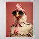 A regal and stylish Easter chicken dressed in a beige military-style uniform with pink accents, a matching feathered tie, and bold aviator sunglasses. This chic and commanding bird brings a unique and fashionable twist to Easter celebrations.