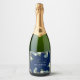 Indulge in elegance with our exquisite sparkling wine label featuring a stylish design of vintage delicate white flowers and lush green leaves set against a chic blue backdrop. Personalise it with your own name and date in a modern handwritten style, creating a unique touch for your celebration.