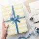 stylish elegant custom name yellow white wrapping. wrapping paper