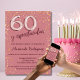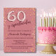 Marca el hito de los 60 años con nuestra elegante invitación de cumpleaños para mujeres, totalmente personalizable en español. Este diseño encantador presenta un fondo rosa suave adornado con brillantes destellos dorados, capturando la esencia de una celebración especial. El número "60" resplandece en un sofisticado tono metálico, aportando un toque de elegancia y glamour.