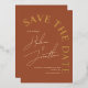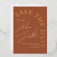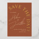 Make a flawless first impression with this luxurious Stylish Elegant Terracotta Wedding Save The Date Foil Invitation. The beautiful foil accents add a luxurious touch to the terracotta and rust orange colour palette, creating an invitation that is both timeless and on-trend. With delicate calligraphy script, this save the date invitation exudes elegance and refinement, ensuring your guests will be excited about the big day. With the ability to easily customise all your details, this invitation ensures your wedding theme will remain consistent and on point. Order today and set the tone for a celebration filled with elegance and glam.