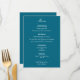 Stylish Elegant Turquoise Blue Wedding Menu, please personalise as required using the online Personalisation template before ordering. Once you have entered your wording onto the Personalisation template, should you find that you need to adjust the positioning of the text then please use the "Edit using Design Tool" option (the button is available by scrolling down in the Personalisation template).