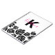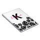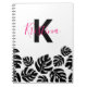 This is a chic and modern customisable notebook that beautifully combines personalisation with style. The cover is adorned with a large, bold letter “K” in black, overlayed with the name “Kristina” in an elegant, cursive font rendered in a striking pink hue. This personal touch adds a unique charm to the notebook, making it a perfect gift for someone special or a stylish addition to your own stationery collection. The lower half of the cover is decorated with an array of black Monstera leaf silhouettes, offering a trendy and organic aesthetic. The Monstera leaves, known for their distinctive shape, add a touch of nature to the design, making it feel fresh and lively. The white background provides a clean and minimalist canvas that makes the other elements pop, creating a visually appealing contrast. This contrast enhances the readability of the text and the visibility of the design elements, making them stand out.