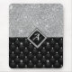 Stylish faux Crystal Silver black diamond monogram Mouse Pad