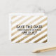 Customise this beautiful simple stylish modern save the date postcard with black text over faux gold faux glitter diagonal stripes. Change all the information. On the back side is wording "We're getting married! And would love for you to save the date (date here) to be able to share in our special day! Formal invitation to follow." You can also change this wording with your own words. Matching Wedding Invitation can be found here: