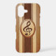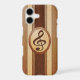 A unique and modern musical design with an inlay of a treble clef music note on a stylish and chic printed faux wood effect in oak, light mahogany and dark mahogany stripes. An eye-catching and striking gift for the musician or music lover.