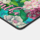 Stylish floral pink flowers blue monogram pattern desk mat