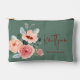 Stylish Floral Sage Green & Orange Peach Script Accessory Pouch