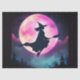 A stylish witch in the purple sky with a full moon and purple skies Tissue paper with a scary and dreamy design .Great for small gift wrapping or paper crafts like decoupage .