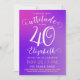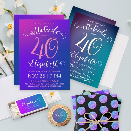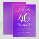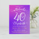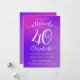 This 40th birthday invitation card has a stylish feminine design with a modern colourful bright pink to purple gradient and elegant customisable texts.