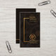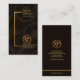 A simple rusted mechanical gears design with a creative stylish rectangle gold border. The gold rectangle houses your prestigious name and job title at the top. At the bottom of the gold frame lies the faux gold logo of a turbine engine alongside the contact details.