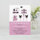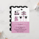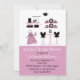 Fun bridal shower invitation done in pink, black, and white. Graphics of kitchen accessories decorate the top front of the invitation, with a solid pink, on the bottom. The back is done in a black with bold white polka dots. White and black text, on the front is ready to personalise for your bridal event. Great invitation the bride will cherish.