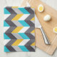 Stylish Geometric Blue Yellow Grey Pattern Tea Towel