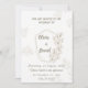 This wedding invitation features a minimalist design with a gold, geometric frame adorned with delicate floral illustrations. The flowers and leaves are subtly placed around the frame and the corners of the card, creating an Stylish and sophisticated look on a white background.