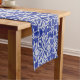 Elegant blue initial monogram Table Runner. Elegant and ornate blue design that features your monogrammed initial and last name in light grey modern typography printed on a patterned geometric blue grey background. This trendy elegant design is perfect for your bedroom, family room or living room. Personalise this stylish pillow with your family's monogrammed initial and last name to create your own custom throw pillow. You can change all text colours and fonts, click to customise further underneath the text customisation area this will take you into the design tool. A unique gift for birthday, holidays and any special occasion. Whether for valentines day, Christmas or as a gift in general it makes a great gift idea