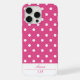 Add a touch of playful charm to your phone with this chic iPhone 15 Pro Max case featuring a pink and white white polka dot pattern. Designed for those who love a fun and feminine style, this case is also customisable to make it uniquely yours. Personalise it with your first name in a beautiful script, and add your initials in a stylish monogram for an extra dose of sophistication. Also makes a great gift for birthdays and all occasions.