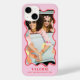 This stylish and trendy Case-Mate iPhone 14 case features a fun pink and red wavy design, perfect for girly vibes and retro flair. Customise it with a personal photo to celebrate your best friend's bridesmaids, making it a unique keepsake of friendship. Its curvy, eye-catching pattern adds a touch of charm, making it the ideal accessory for fashion-forward friends.