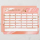 This personalised weekly schedule / school timetable features a template divided into 6 rows and 6 columns (first is TIME, followed by days of the week MON to FRI), and a large rectangular shape for additional notes below. A stylish marble background in coral and pink shades with gold accents makes it perfect for high school and college students.