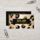 Glamour animalier girly networking discount or coupon card featuring digital image of black and glitter gold leopard print over a faux metallic gold backgoround. Black stripe overlay. Great for beauty, fashion , entertainment and event professionals.