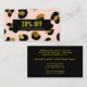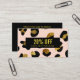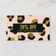 Glamour animalier girly networking discount or coupon card featuring digital image of black Pink Blush and glitter gold leopard print. Black stripe overlay. Great for beauty, fashion , entertainment and event professionals.