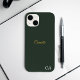 A stylish phone case in Gold & Forest Green colours with a name and monogrammed letters in white. A nice gift idea for a classy and elegant woman. Also, suitable for chic men and distinguished.