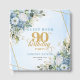 Celebrate a once-in-a-lifetime milestone with this elegant 90th birthday guest book, designed in soft dusty blue, pastel blue, pale blue, and light blue tones woven with shimmering gold accents. The beautiful watercolor florals blend eucalyptus greenery with refined blue blossoms, surrounding a delicate gold-frame layout perfect for a sophisticated birthday celebration. This customizable 90th birthday sign-in book lets you add your own name, date, and event details, creating a meaningful keepsake guests will love signing and sharing memories in. Ideal for elegant décor themes, this design complements luxury parties, modern celebrations, and timeless milestone gatherings. A perfect blend of style and sentiment, this personalized 90th birthday guest book becomes a cherished heirloom filled with warm wishes, laughter, and unforgettable moments.