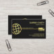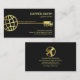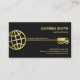 At the top is your prestigious name and the job title alongside a slogan option near the gold globe. Towards the base lies the business name and its contact details.