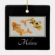 Personalised ornament with an illustration of a pair of gold koi fish swimming together. Black background.