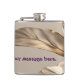 Well made flask, a little better than I had expected. Flask came in clear plastic box which gave it a nice presentation when I took it out of the zazzle packaging. Image is not printed on flask but on sticker. Don't know how this will hold up I haven't used it yet. This would make a Great gift! I plan to purchase more for friends! Cheers. I thought a little brighter than computer. Very crisp, writing wasn't
