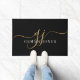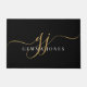 Elegant minimalist gold and white monogram on a black background doormat. Stylish and modern.