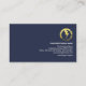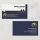 A gold building electrical power line stretches across the card's face demarcating the upper white layer against its dark blue counterpart below. At the top right corner lies your prestigious name and job title with a slogan caption just below the gold homes. Change the caption remarks to suit your service needs. Towards the base is a gold power logo you can use with the business name and contact details beside it.
