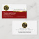 A white and red cover is accentuated by a faux gold tab near the card's center. Riding on this gold tab of success is your business name with a creative gold "letter-e" logo you can use in the opposite direction. The letter-e can represent "electrician", your name or possibly the business name etc. Below the logo lies your prestigious name, job title and the contact details with a slogan caption in the opposite direction.
