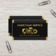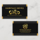 A dark grey and black cover is encapsulated by gold tabs at the corners of the card. It features a creative gold handyman motif which can represent some of the services that you might offer. Over at the top is the business name with the contact details near the base of the card.