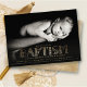 This modern and bohemian baptism religious invitation flat card features bold faux foil vintage typography on the front overlaying a full bleed custom photo of your child.