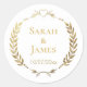 Stylish Gold Wreath w/ Heart Personalised Wedding Classic Round Sticker