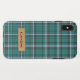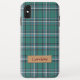 Trendy and Stylish Royal Green Plaid Tartan with Personalised Name on Fabric Label - Unique and Customisable iPhone Case for you. For further customisation, please click the "customise further" link and use our design tool to modify this template.