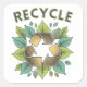 Stylish Green & Faux Gold Recycle Symbol Leaves Square Sticker