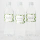 Party water bottle labels with a pretty pattern made up of green tropical leaves. Exotic and stylish design.