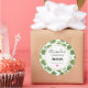 Candle or soap product stickers with a pretty pattern made up of green tropical leaves. Exotic and stylish design. A white circle with a faux gold foil border layered over top with your text inside.