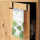 Stylish Green Tropical Leaves Pattern Monogram Tea Towel