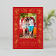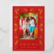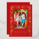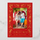 REAL FOIL! Botanical leaves and greenery surround your favorite photo with the words "MERRY CHRISTMAS" and your names in your choice of gold, rose gold or silver foil on a red background or whatever color you choose.