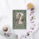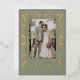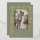 REAL FOIL! Botanical leaves and winter greenery surround your favorite photo with the words "MERRY CHRISTMAS" and your names in your choice of rose gold, gold or silver foil on a sage green background.